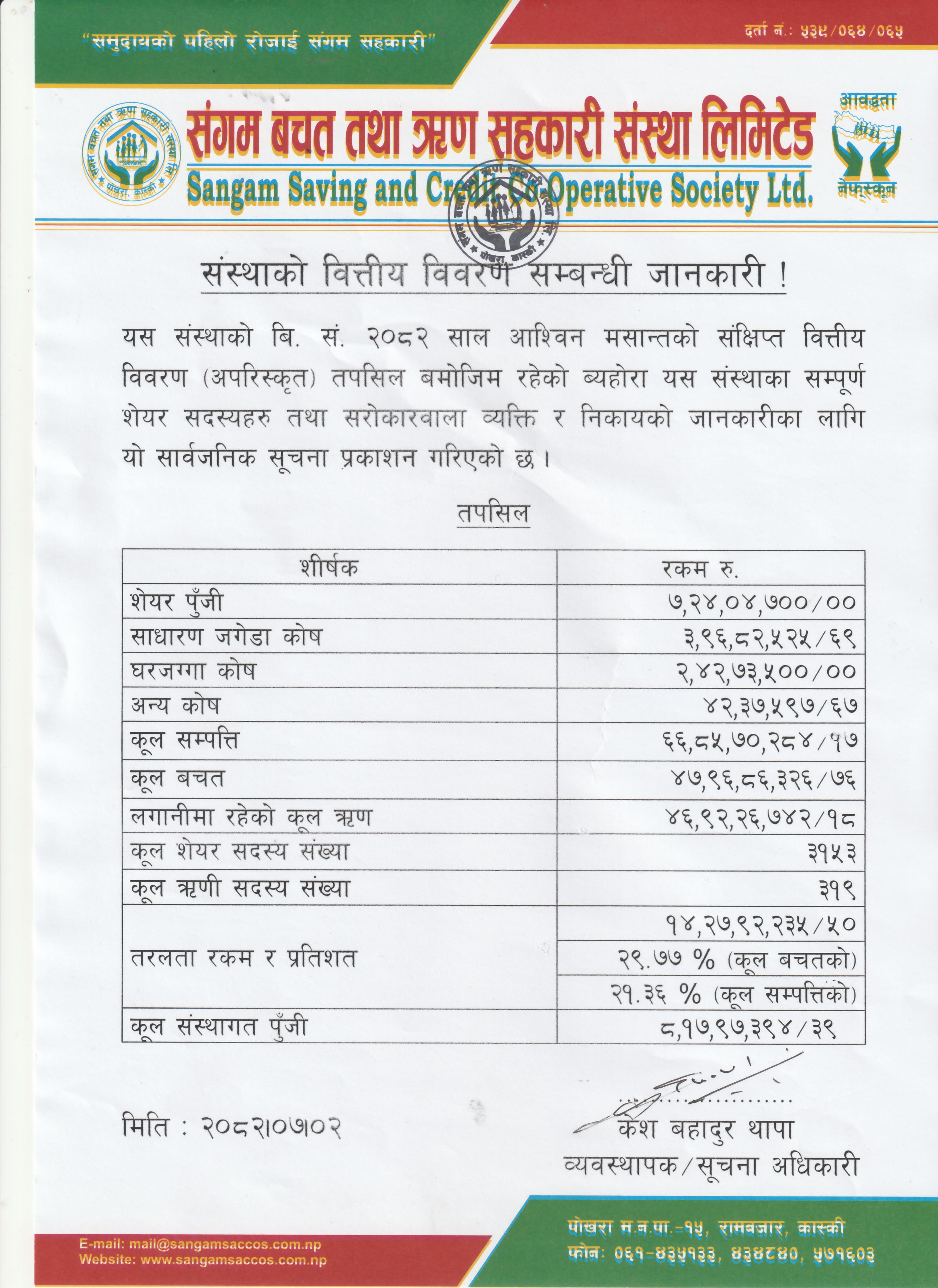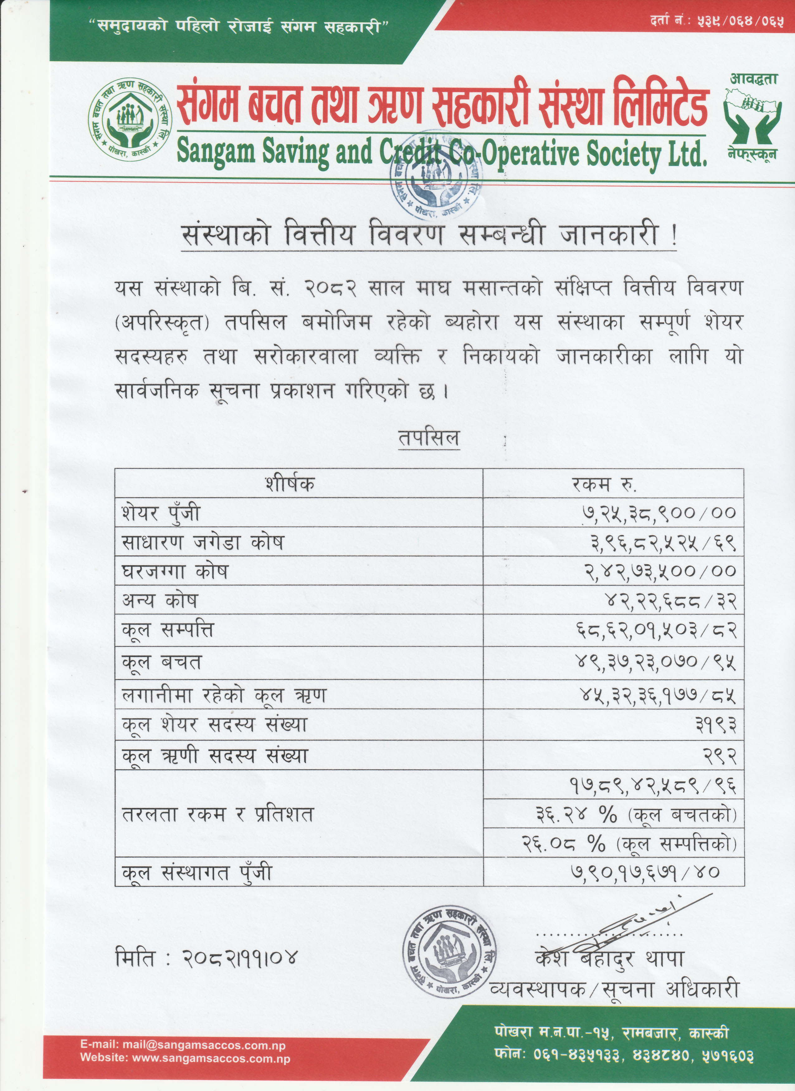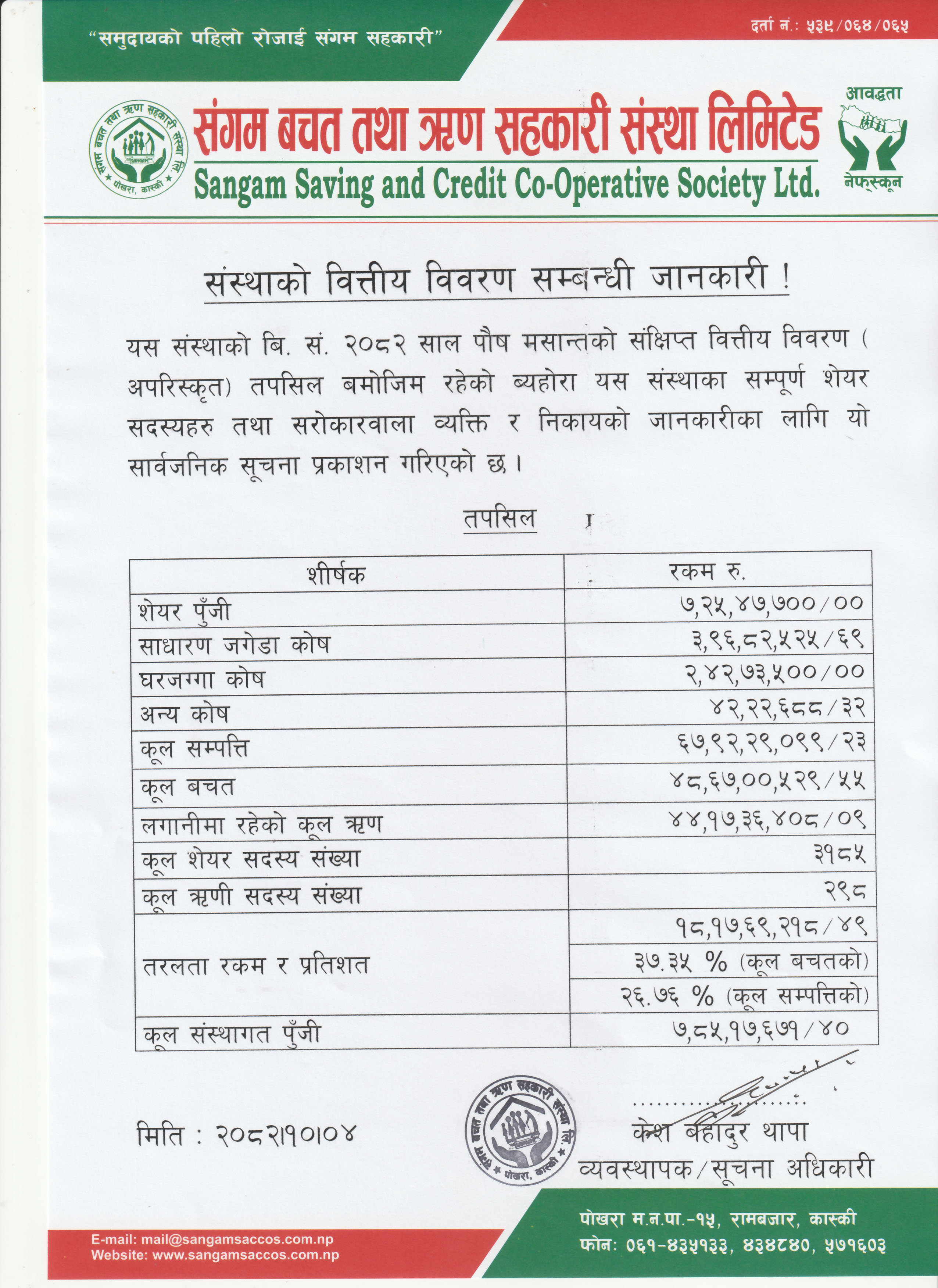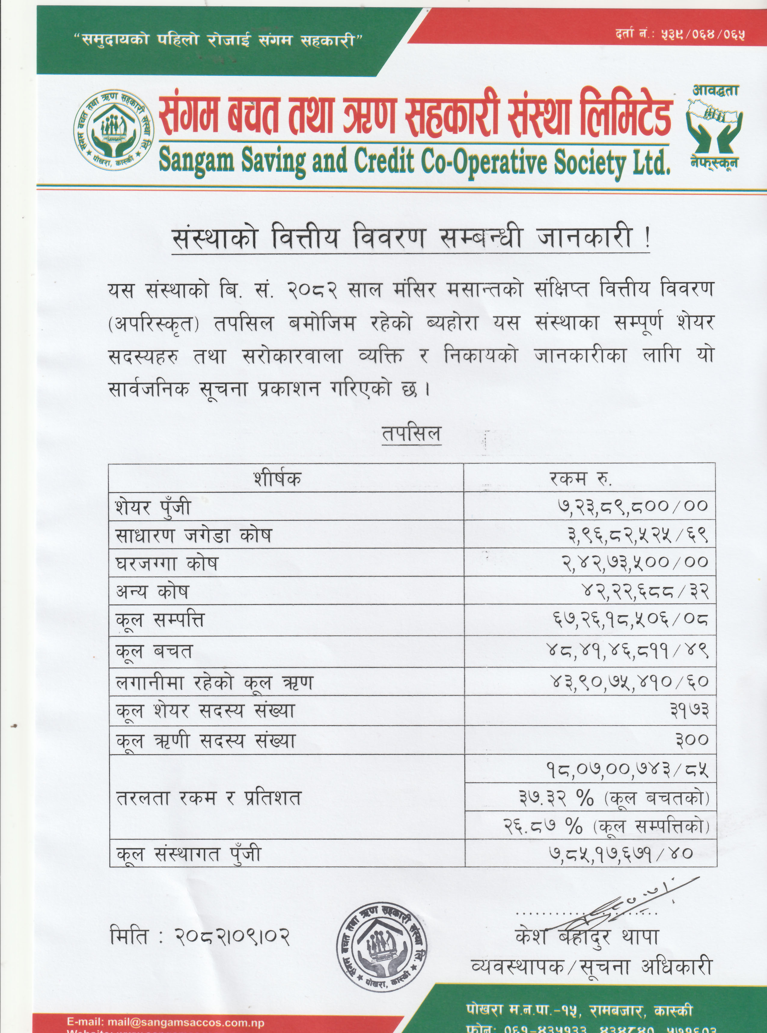 | मंसिर मसान्तको संस्थाको वित्तिय विवरण सम्बन्धी जानकारी |