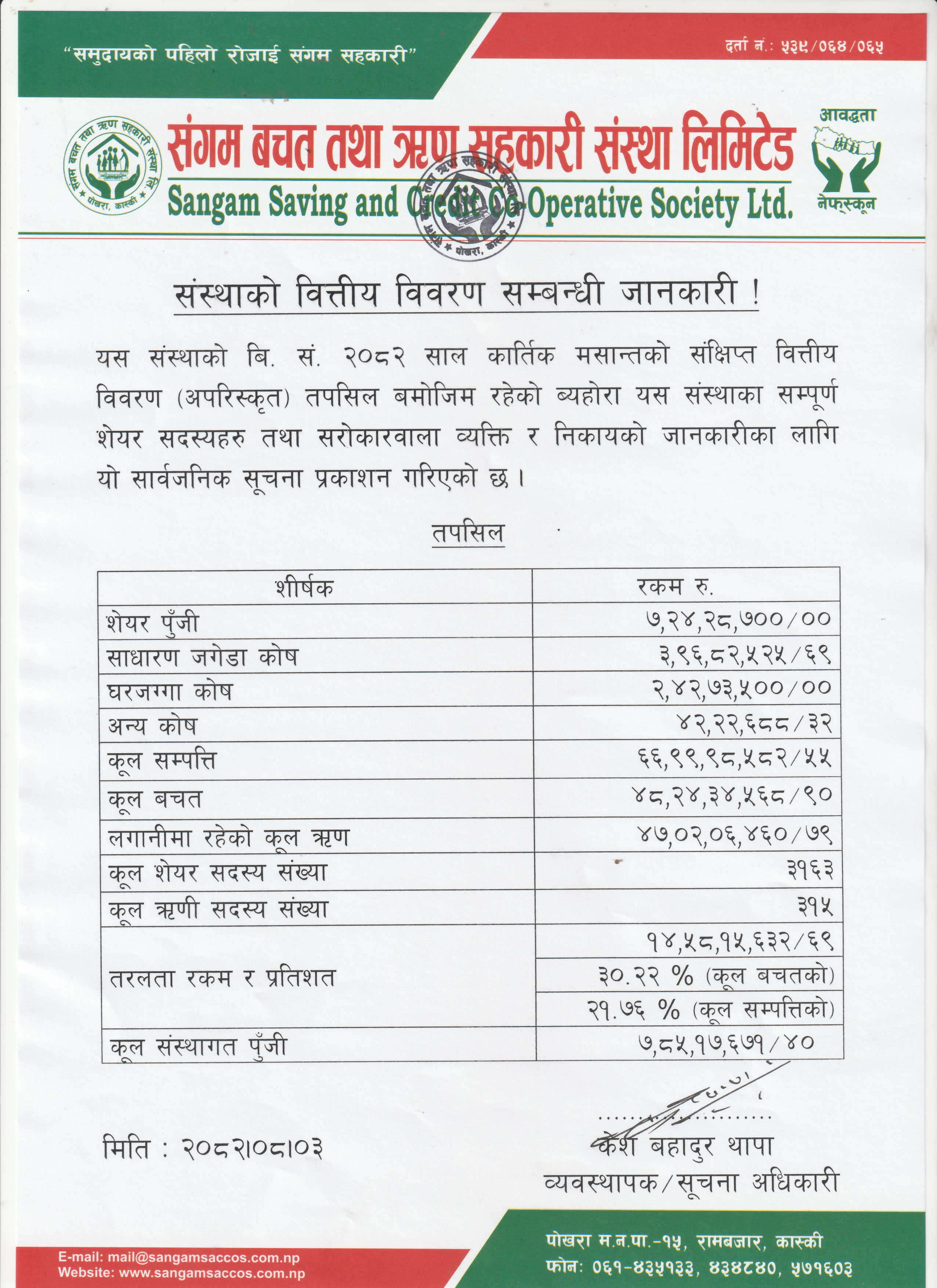 | २०८२ कार्तिक मसान्तको संक्षिप्त वित्तय विवरण |