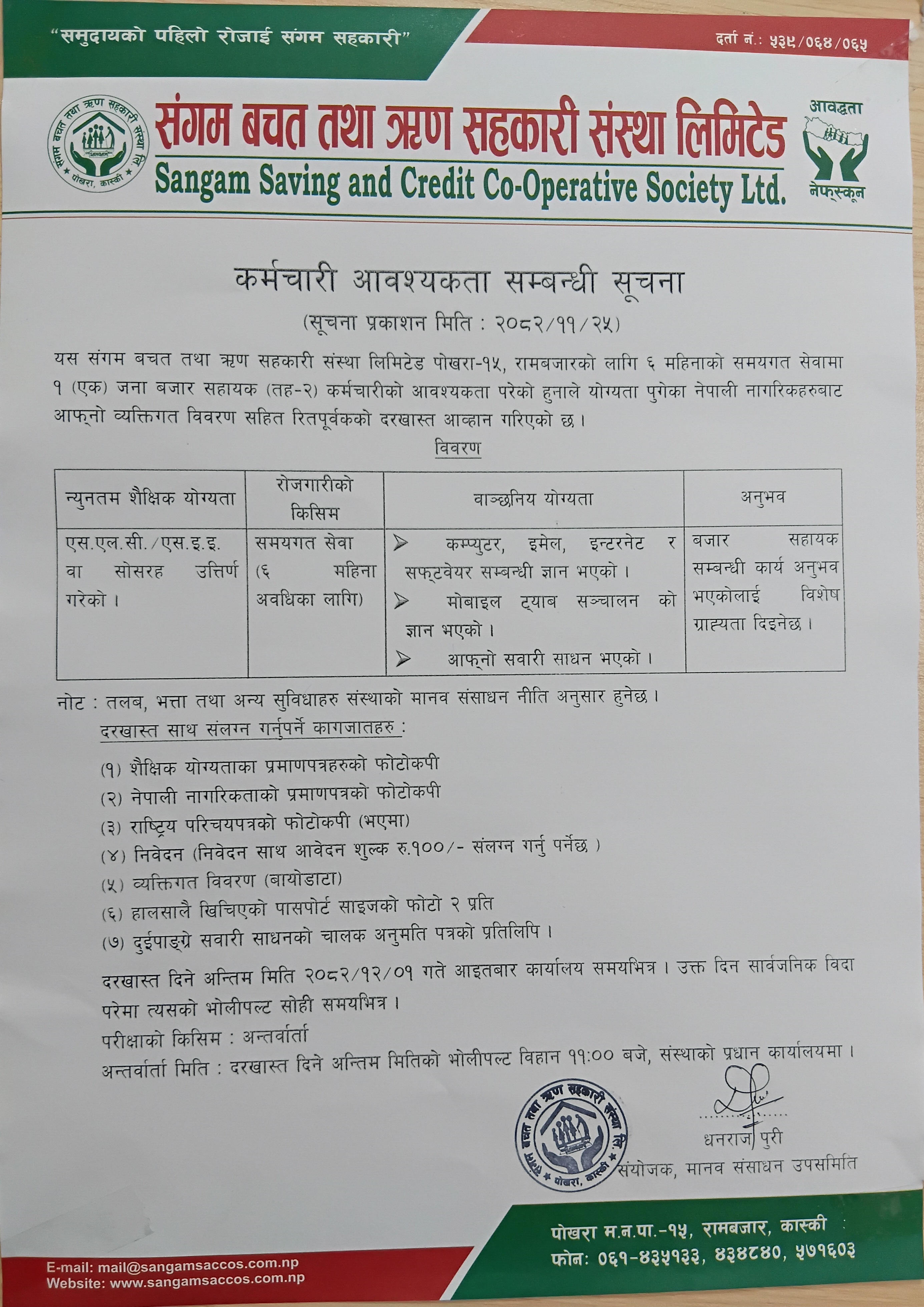 VACANCY ANNOUNCEMENT 2082.11.25 (TEMP.)